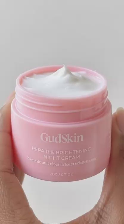Your all-day glow, bottled. GudSkin™ Repair & Brightening Day Cream delivers lightweight hydration while targeting uneven tone and dullness. With brightening actives and antioxidants, it helps reduce dark spots and keeps skin fresh, smooth, and luminous.